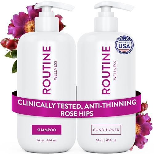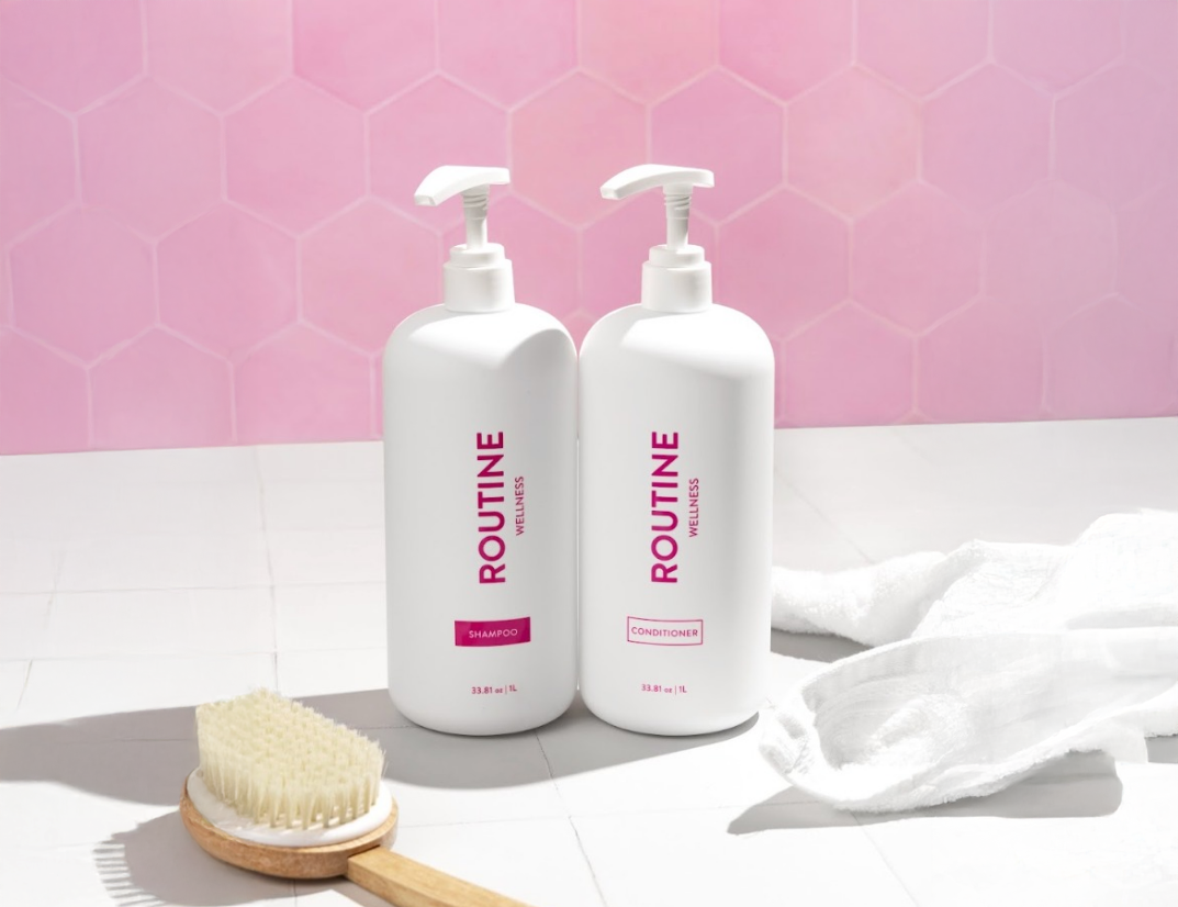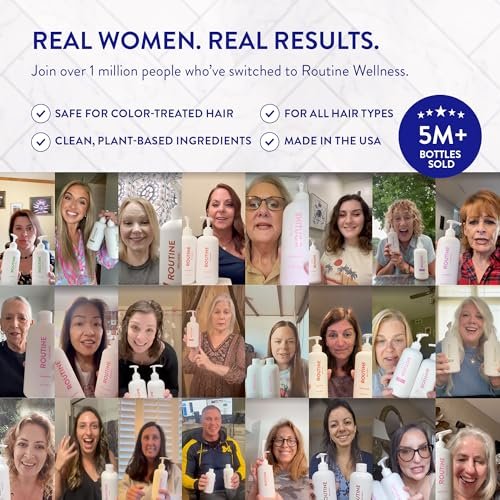 The Routine Wellness Shampoo and Conditioner Set is designed for women and men experiencing hair thinning, breakage, and reduced volume. Formulated with a blend of biotin, caffeine, saw palmetto, niacinamide, and pea peptides, this set helps strengthen weak strands from root to tip while supporting visibly fuller, healthier-looking hair over time. The shampoo cleanses gently without stripping, while the conditioner nourishes and softens hair to reduce dryness and snapping. Both formulas are sulfate-free, paraben-free, and safe for color-treated hair, making them suitable for daily use on fragile or chemically processed strands.